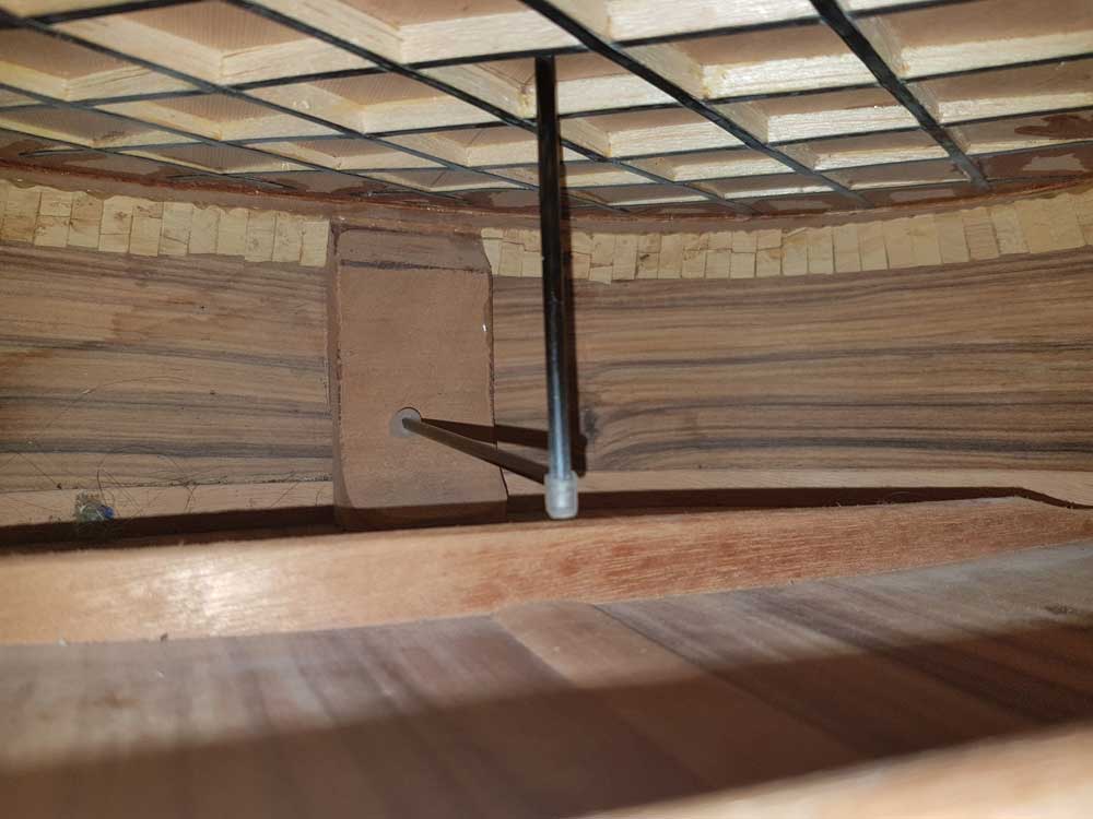Pre-loaded carbon tube allows optimization of guitar bracing structure from the point of view of the final result: the sound performance of the instrument.